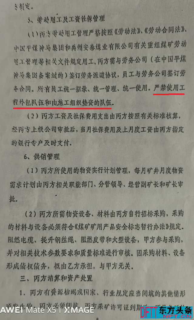 谭治国等人从2015年开始承包平禹新明煤业的采煤,2023年4月27日,隆达矿业再次和张卫锋、谭治国签定为期3年的协议,将平禹新明煤业公司的井上、下的安全生产工作全部由乙方负责管理。2023年8月7日,新股东实控人杨广西签署补充协议,对隆达矿业与谭治国施工队签订的协议进行了确认。
