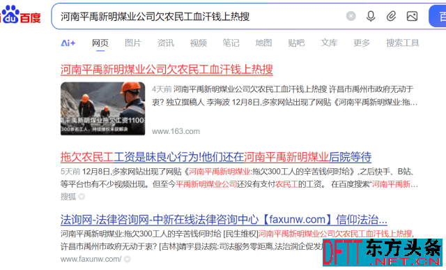 12月8日,法询网发布了《河南平禹新明煤业:拖欠300工人的辛苦钱何时给》,之后多家网站予以转发,一时上了百度热搜。由于欠薪问题,平禹新明煤业之前被停工停产。而在农民工工资没解决的情况下,平煤神马集团不顾舆论及民工呼声,竟在29日对新明煤业进行复工复产验收......