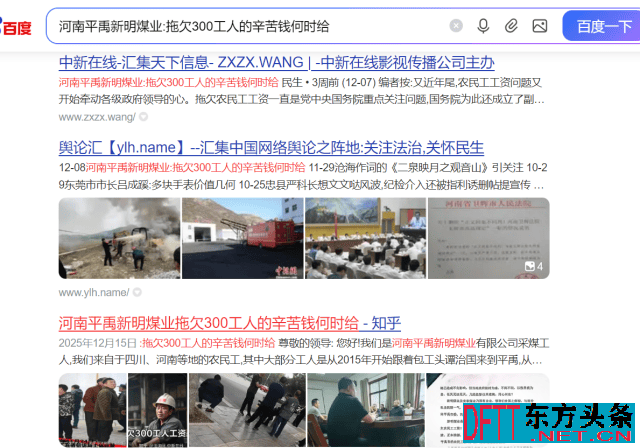 由于没人理睬,于是农民工找到法询君委托在网上发布了《河南平禹新明煤业:拖欠300工人的辛苦钱何时给》, 12月15日,撰稿人代农民工代表在河南省政务平台的“豫事办”上做了反映。