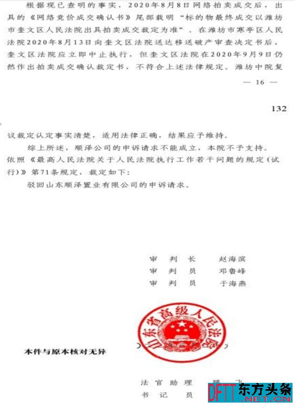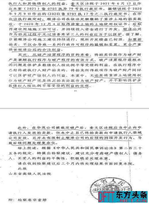 就在张先国的优先受偿权有望实现时,买受人顺泽公司不服34号裁定号,向山东省人民检察院申请监督。