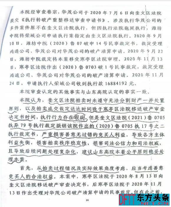 张先国认为:奎文法院的执行行为存在双重违法:一是单独拍卖土地导致“房地分离”,违反《民法典》第三百五十六条强制性规定:“建设用地使用权转让、互换、出资或者赠与的,附着于该土地上的建筑物、构筑物及其附属设施一并处分"该。该原则要求土地使用权与建筑物应当一并处分;二是奎文法院违反“执转破”程序规定。收到“执转破通知”后应当中止执行而未中止,违背《企业破产法》第十九条及相关司法解释。该行为不仅在程序上违法,更导致本应纳入破产财产的资产被非法处置。
