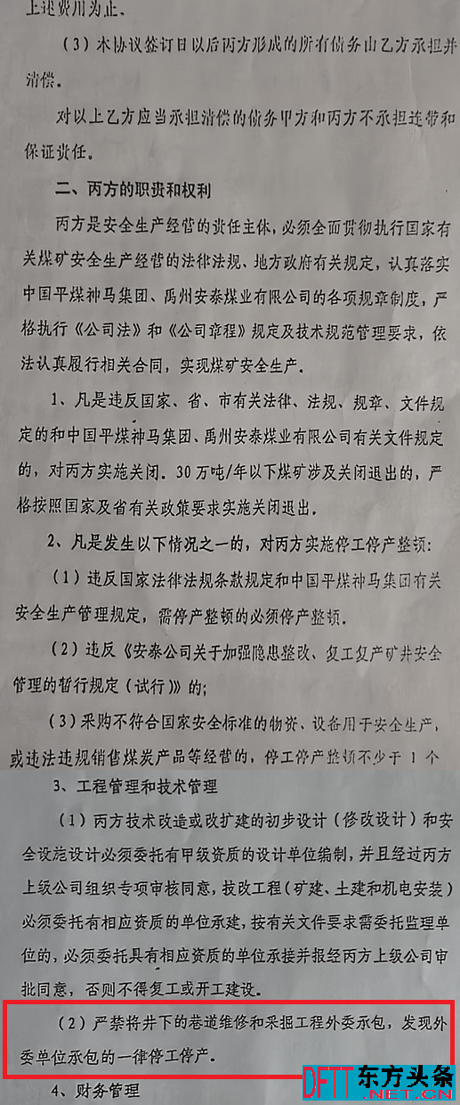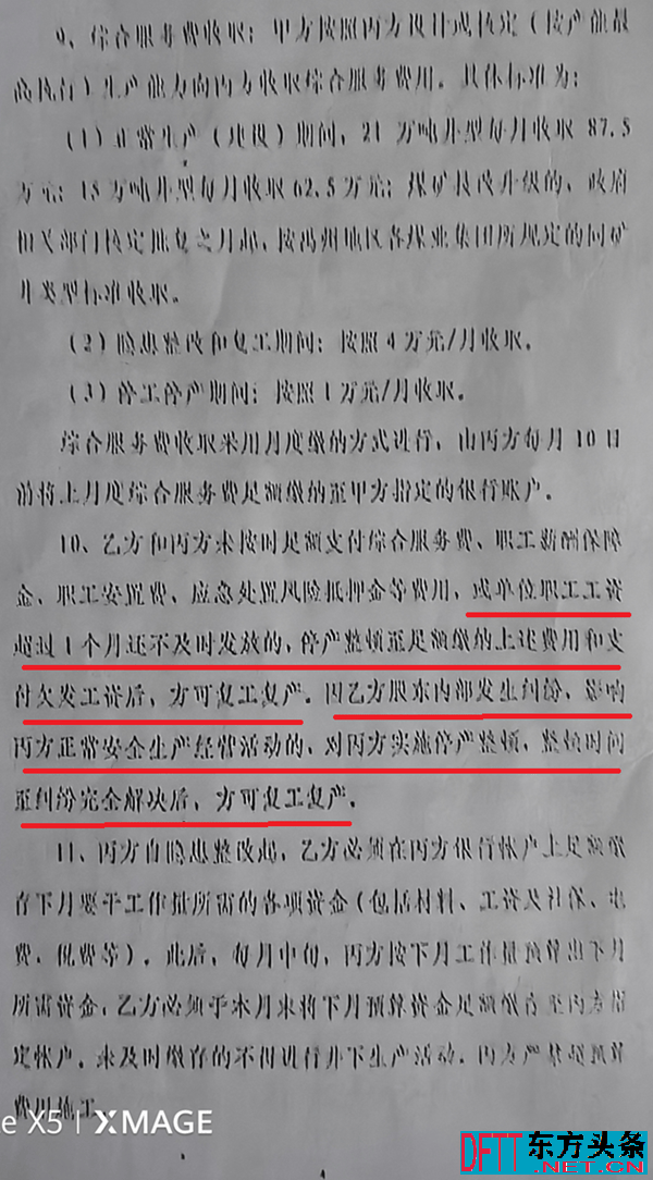 看看这个第十条规定:乙方和丙方未按时足额支付综合服务费、职工薪酬保障金、职工安置费,应急处置风险抵押金等费用,或单位职工工资超过1个月还不及时发放的,停产整顿至足额缴纳上述费用和支付欠发工资后,方可复工复产。因乙方股东内部发生纠纷,影响丙方正常安全生产经营活动的,对丙方方实施停产整頓,整顿时间至纠纷完全解决后,方可复工复产。