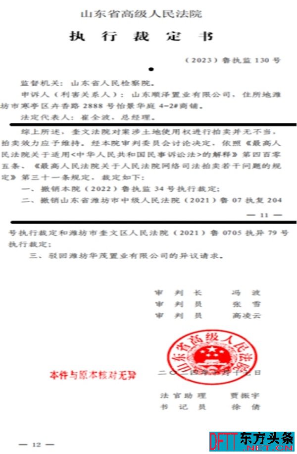 就在张先国的优先受偿权有望实现时,买受人顺泽公司不服34号裁定号,向山东省人民检察院申请监督。