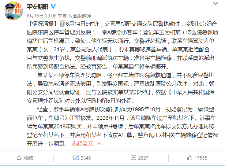 北京开劳斯莱斯堵医院急救通道的京A88519女子并非孕妇,被行拘5天
